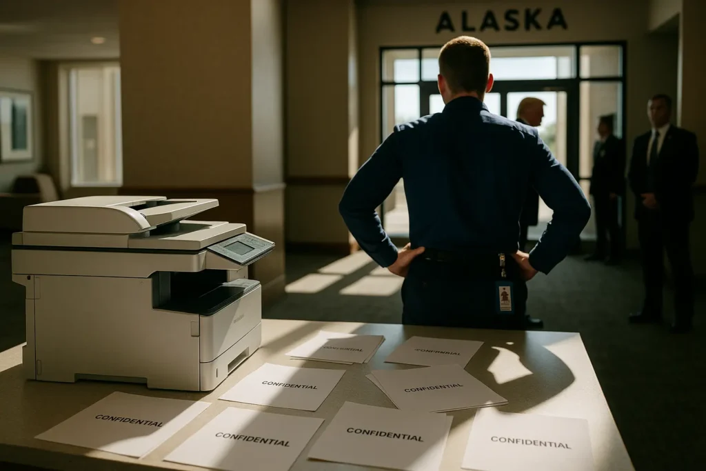 In a turn that stunned both D.C. insiders and average Americans, sensitive Trump-Putin summit documents were discovered in a public printer at the Hotel Captain Cook in Anchorage, Alaska. This Alaska hotel incident has thrown a harsh light on the practices of staff charged with managing high-level government secrets, raising sharp questions about security procedures, professionalism, and even the ability of officials to protect the nation’s most crucial information. The leaked State Department files concerned the August 15 meeting between President Donald Trump (Republican) and Russian President Vladimir Putin and reportedly revealed a treasure trove of details not previously disclosed by the government.